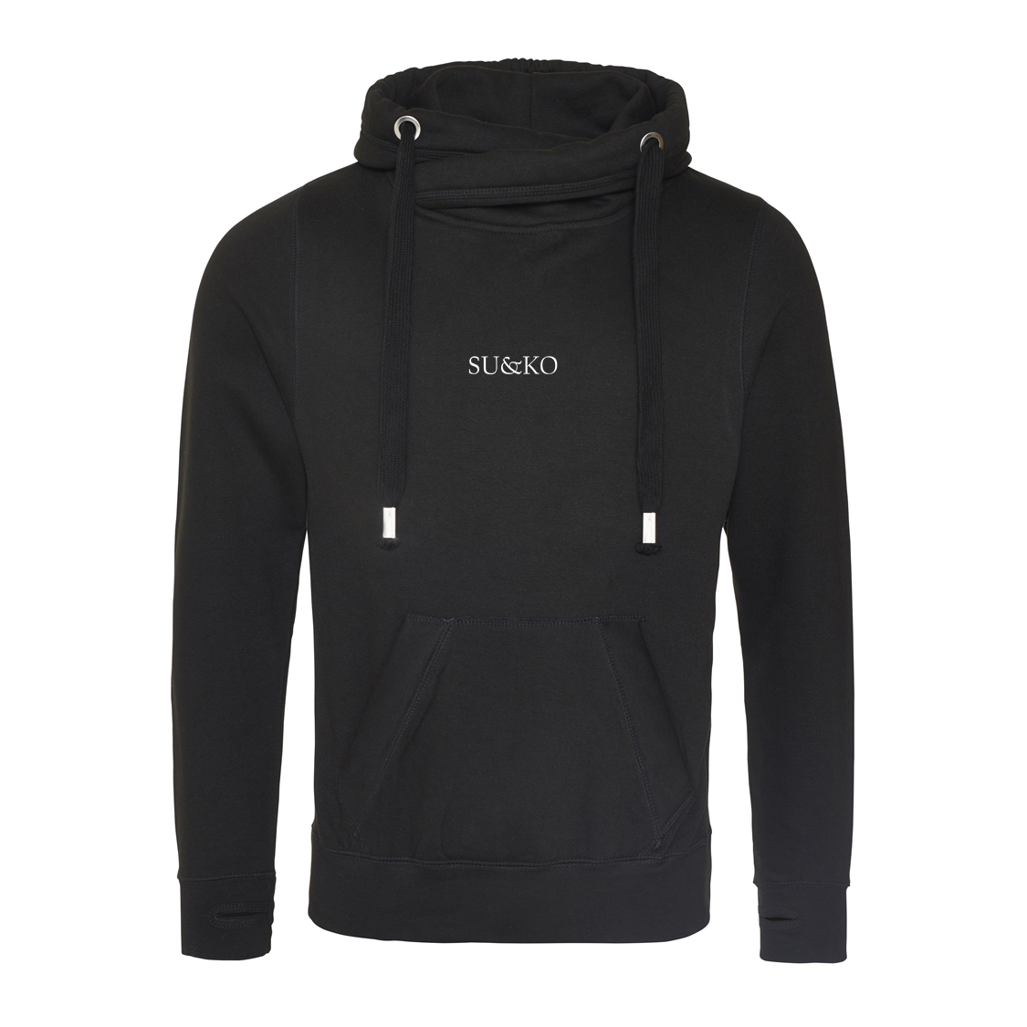 Made with cotton faced fabric which is ideal for decoration, this modern and stylish high necked cross over hooded top features heavy weight fabric to keep you warm on the move.
